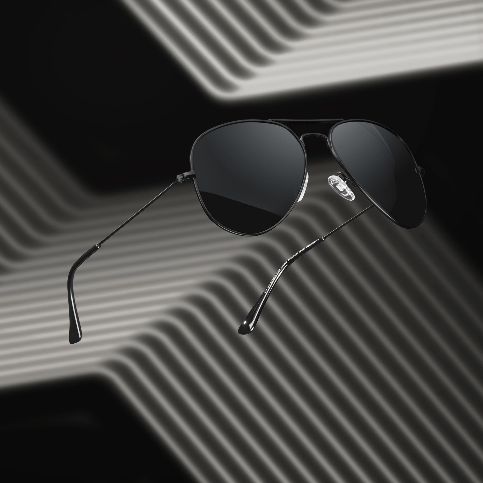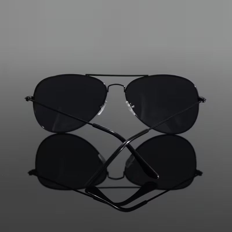 Classic black aviator sunglasses with lightweight metal frame and double bridge design. Stylish, comfortable, and perfect for daily wear, travel, business, and outdoor use.