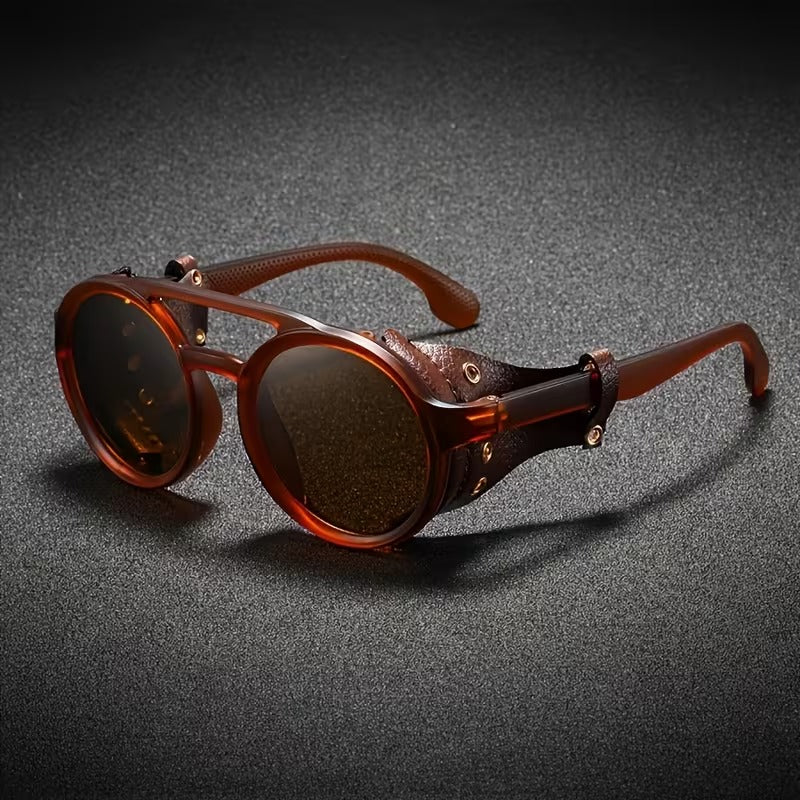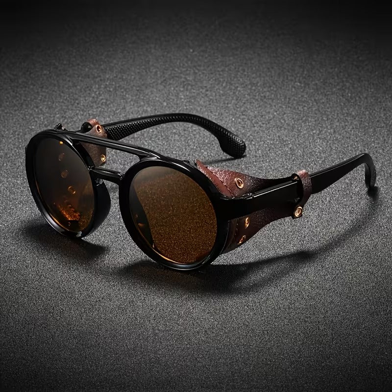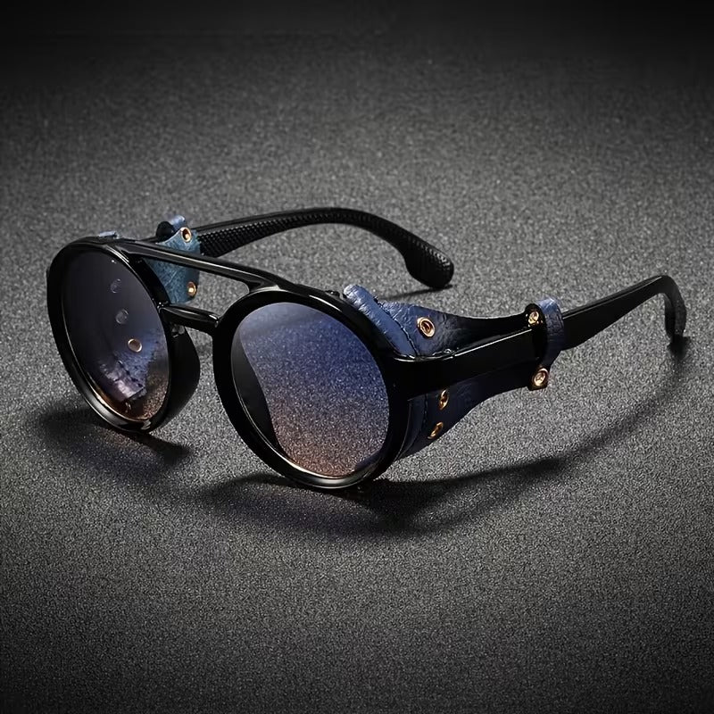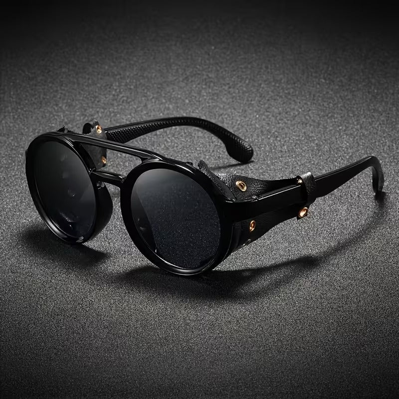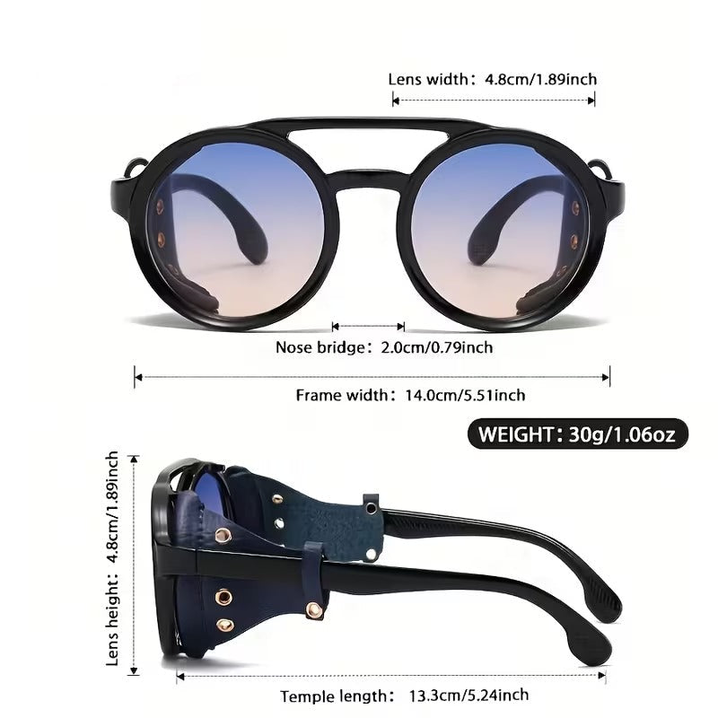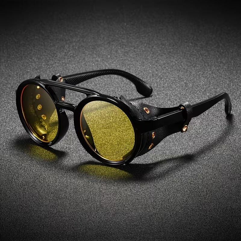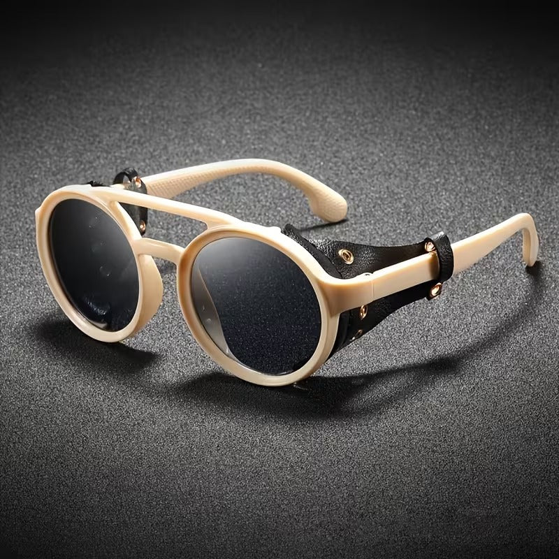 Step into bold vintage fashion with these round steampunk shield sunglasses, designed to combine retro aesthetics with modern edge. Featuring a double bridge structure and side shield panels, these sunglasses deliver a unique industrial-inspired look that stands out instantly.