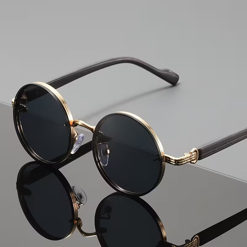 Classic vintage round metal sunglasses with UV400 protection for men and women. Lightweight, stylish full-rim design perfect for outdoor wear, travel, and daily fashion.