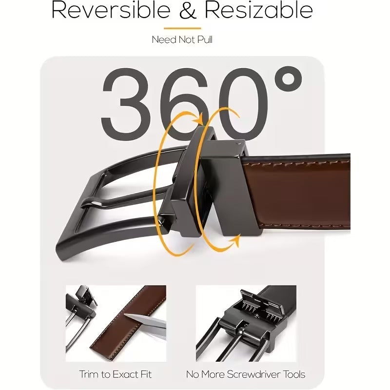 Upgrade your everyday style with this men’s faux leather reversible belt featuring a durable automatic buckle. Perfect for jeans and formal trousers, suitable for all seasons.