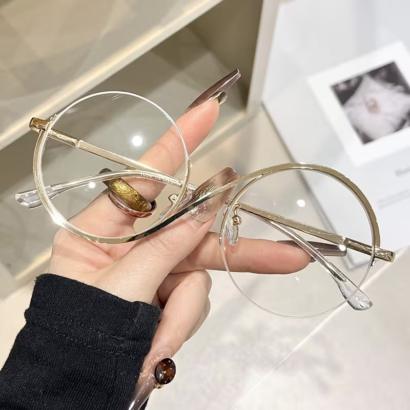 Elevate your everyday style with elegant round metal semi-rim glasses. Lightweight, minimalist and fashion-forward eyewear for men & women—perfect for office, casual wear, parties & Instagram looks.