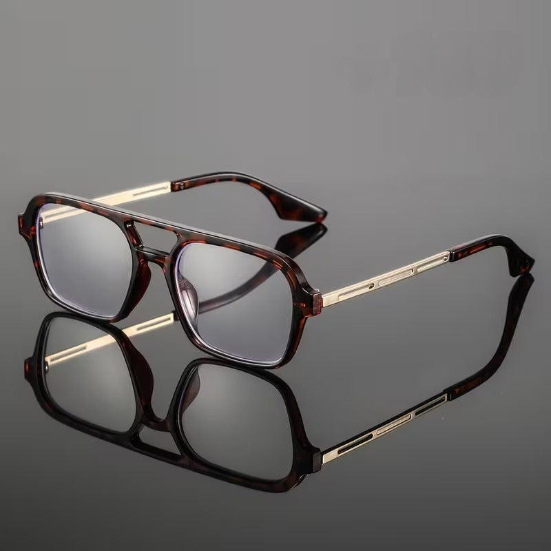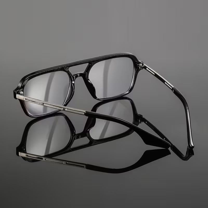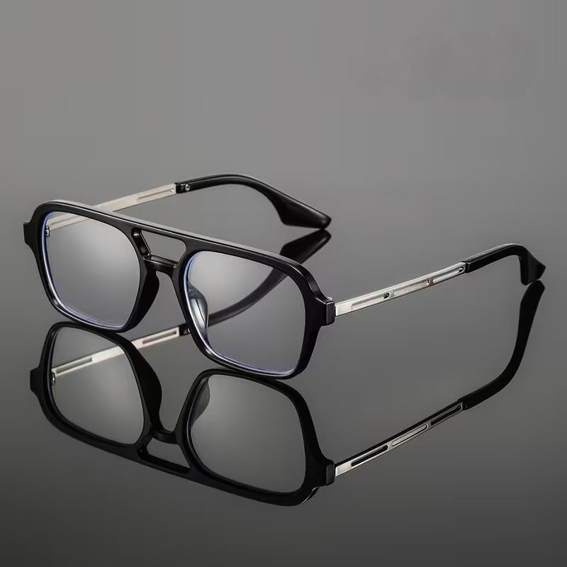 Minimalist square double-bridge reading glasses for men with a lightweight flat-top design. Comfortable PC frame with clear lenses, perfect for daily reading, office use, and casual wear.