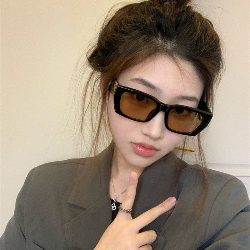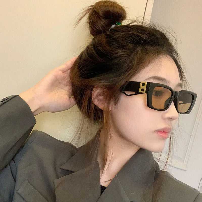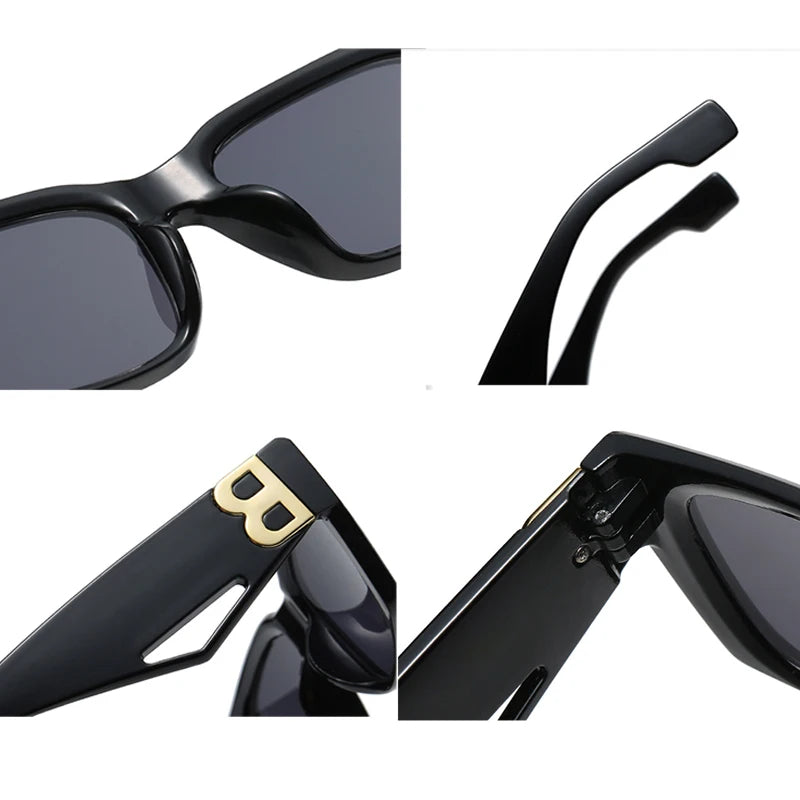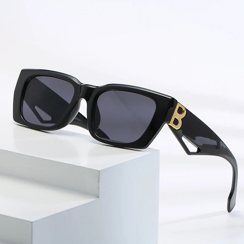 Elevate your look with luxury rectangle sunglasses featuring a bold letter-detail temple design. Crafted with lightweight PC frames and UV400 lenses, these fashionable sunglasses offer eye protection and standout style for daily wear.
