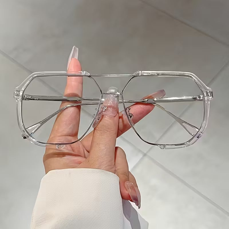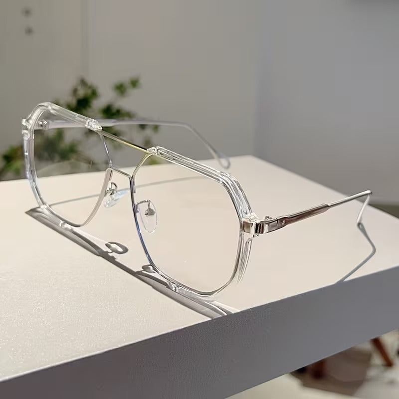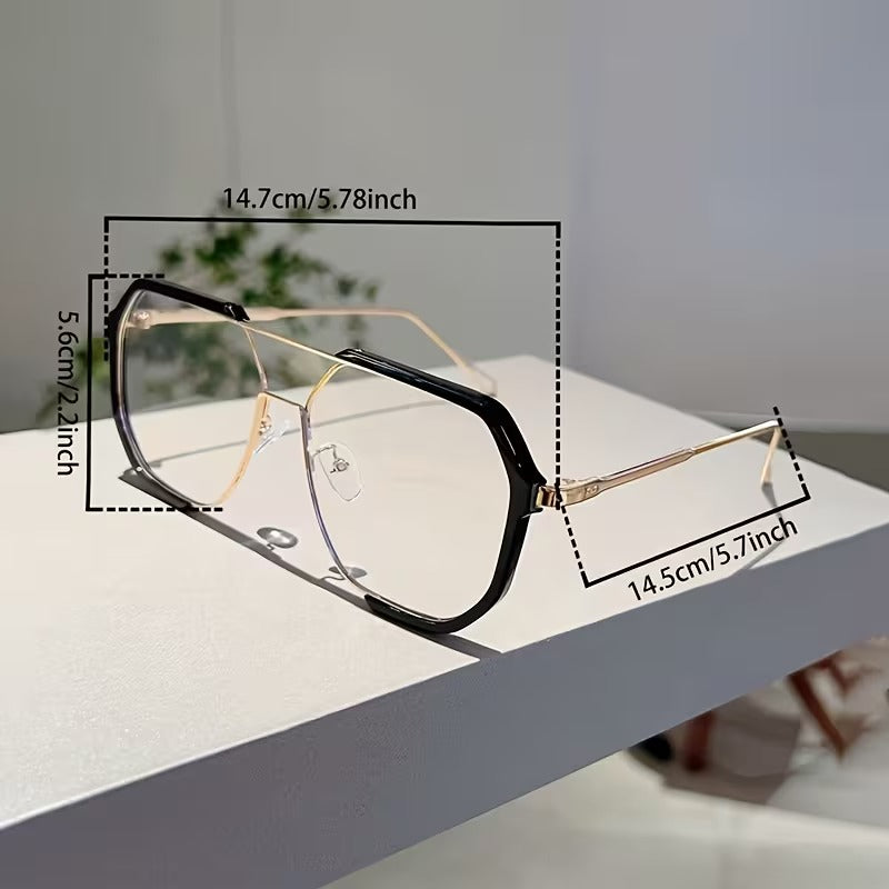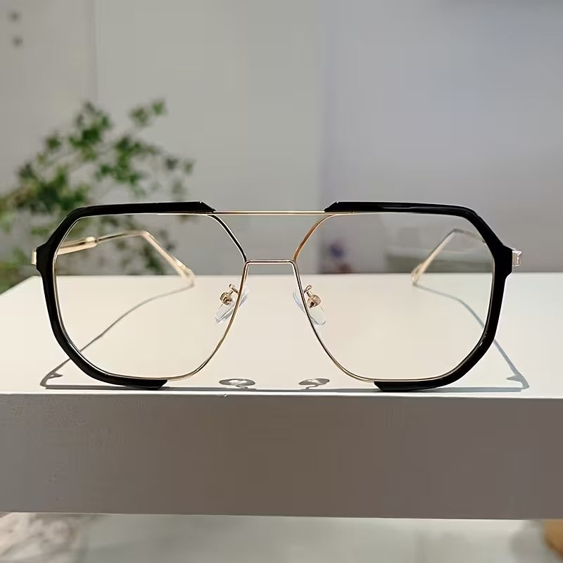 Luxury Oversized Geometric Eyeglasses for Men & Women | Double Bridge Metal Frame Clear Lens Glasses